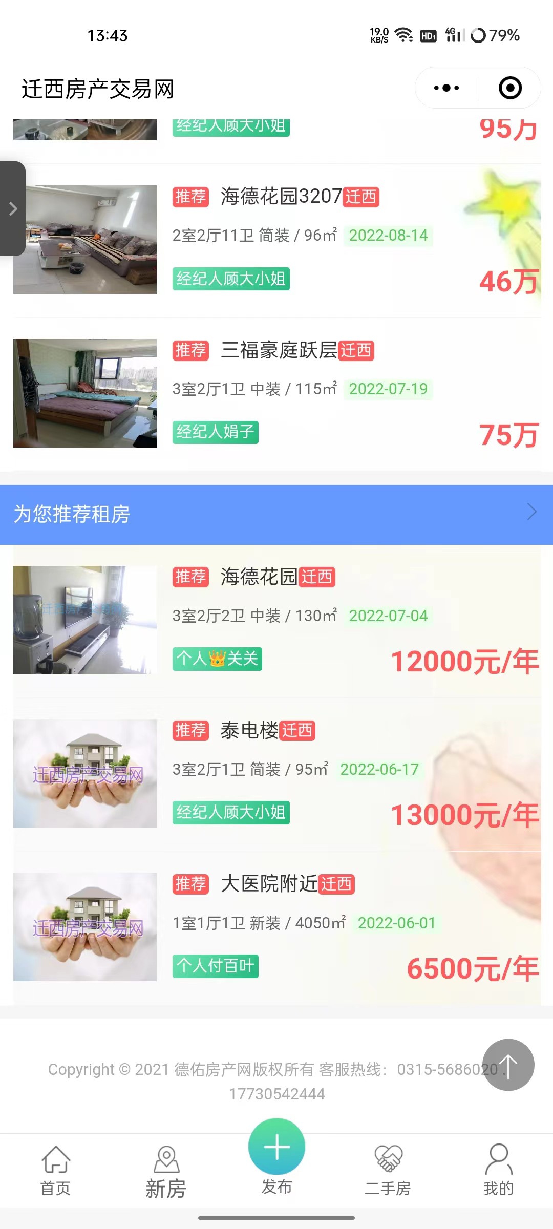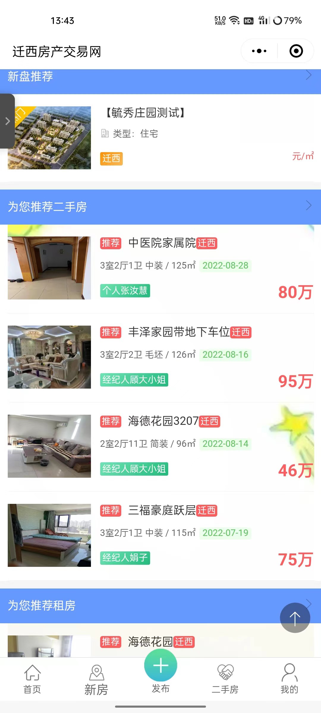 最新完成迁西房产小程序开发,功能有新房,二手房,租房,更多功能陆续开发中。。。。。。